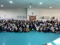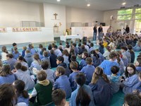 Après la célébration des Rameaux nous avons partagé un moment de solidarité et de convivialité en déjeunant tous ensemble d'un bol de riz dans la cour de l'école