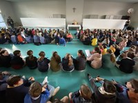 Mardi 21 mai, à 8h30, toute la communauté éducative était invitée à se retrouver dans la grande salle pour un temps de prière à l'Esprit Saint dans le feu de la Pentecôte.