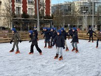 Juste avant les vacances de Noël, la classe de CE2 a eu la chance de pouvoir profiter de la patinoire installée sur la place de l'église. Encadrés par un moniteur, tous les enfants se sont bien amusés !