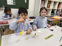 Ce jeudi 27 novembre, les GS et les CE2 se sont mélangés pour faire des décorations de Noël. Les plus grands devaient bien sûr aider les plus jeunes pour que chacun réussisse à faire de beaux ornements.