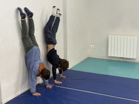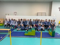 Pour la première période, les CE2 s'entraînent aux roulades, à la chandelle, à l'équilibre, à marcher sur une poutre...