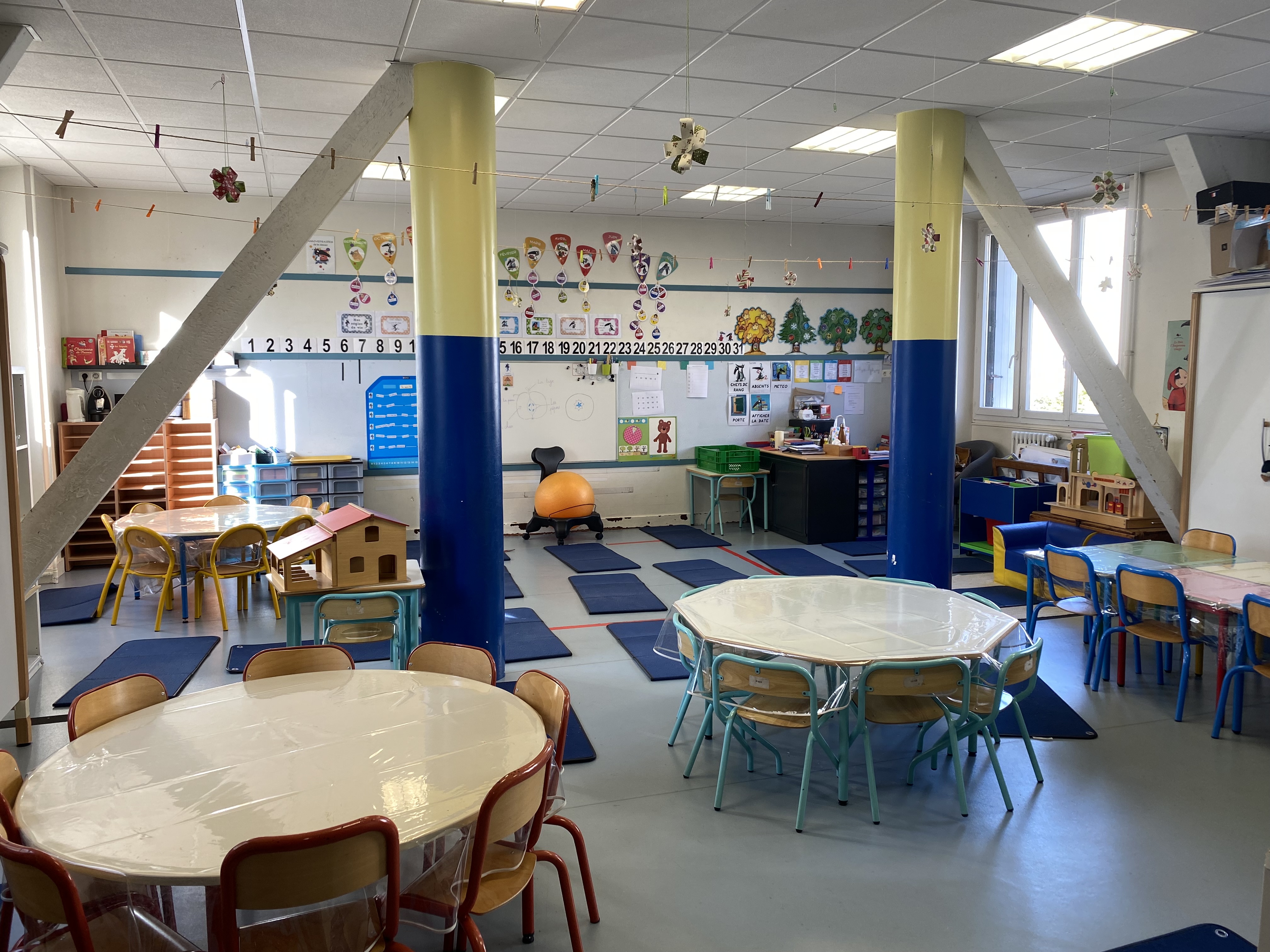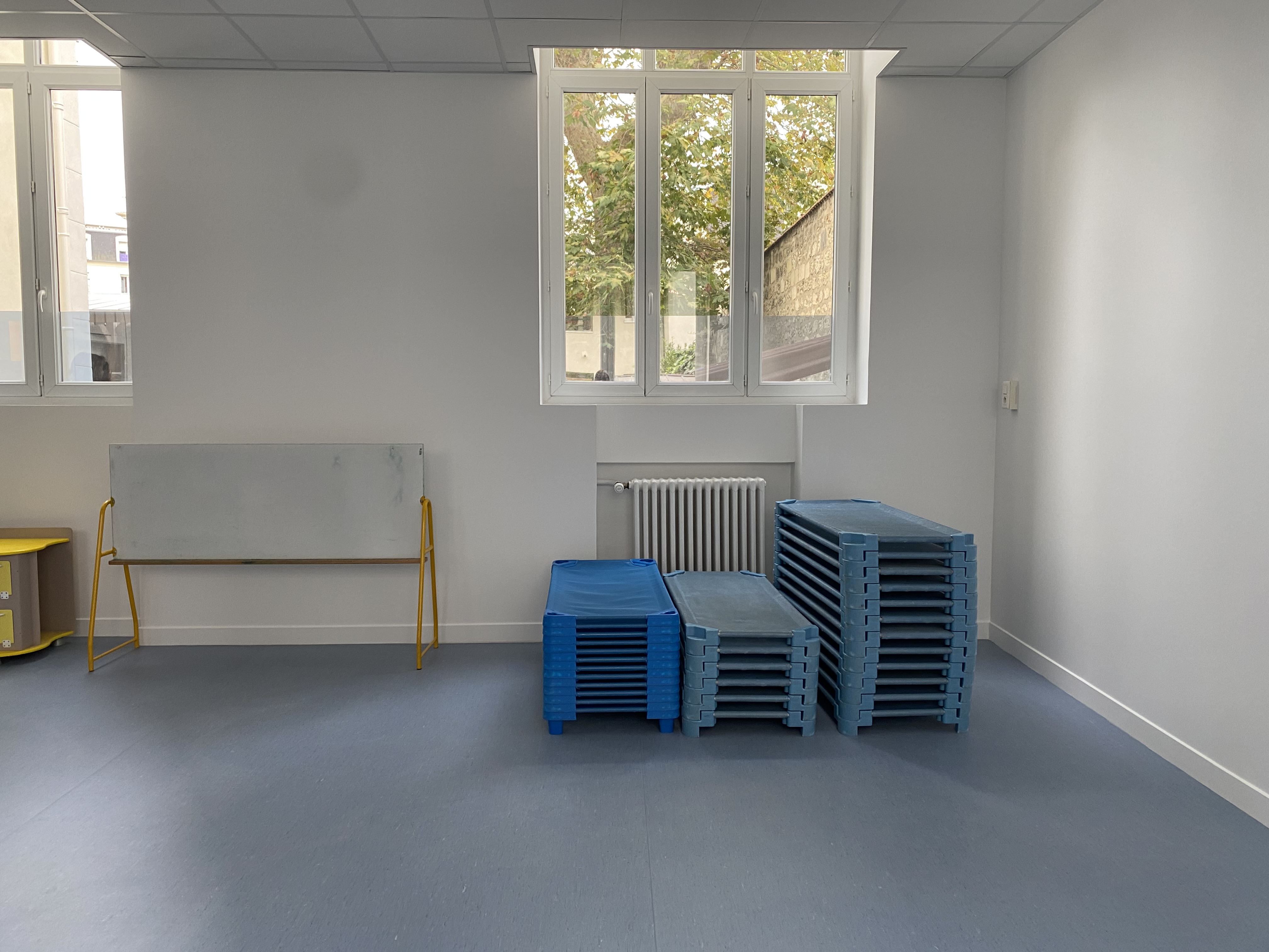 Rénovée pendant l'été 2024, la salle de motricité/sieste accueille en priorité les maternelles.